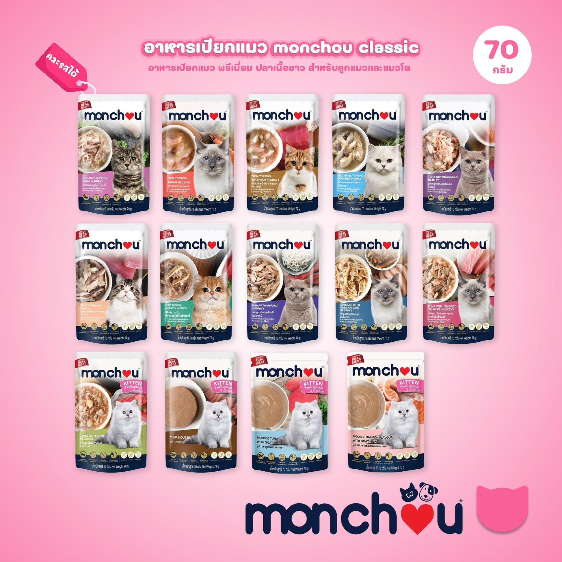 [ปลีก 1 ซอง] Monchou Classic มองชู อาหารเปียกแมว ทูน่าเนื้อขาว ขนาด 70 กรัม(g.)