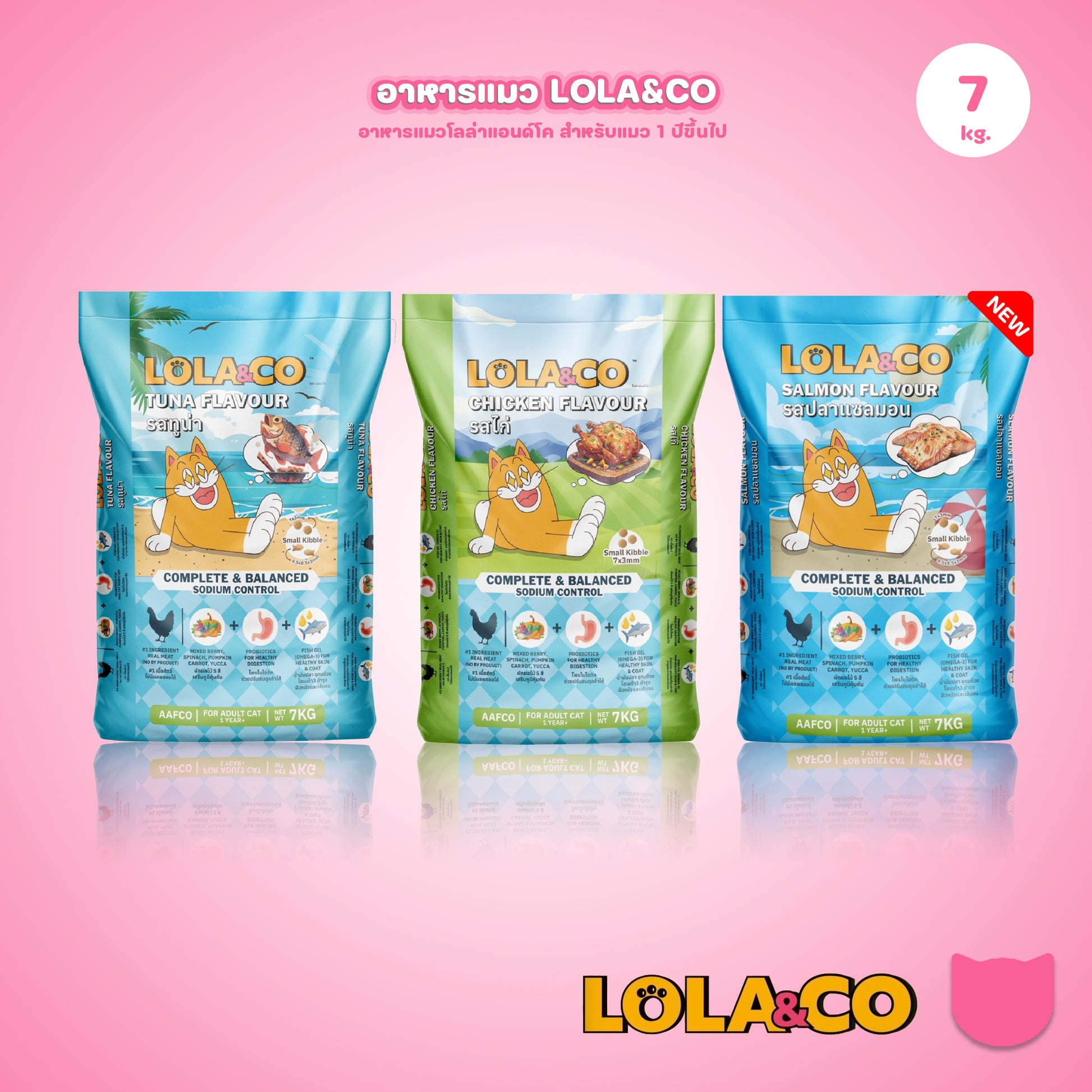 [ยกกระสอบ 7 kg.] LOLA&CO อาหารแมว โลล่า แอนด์ โค อาหารเม็ดแมว ไม่มีผลพลอยได้ มีโพรไบโอติก สำหรับแมวโตอายุ 1 ปีขึ้นไป ขนาด 7 กก.(kg.)