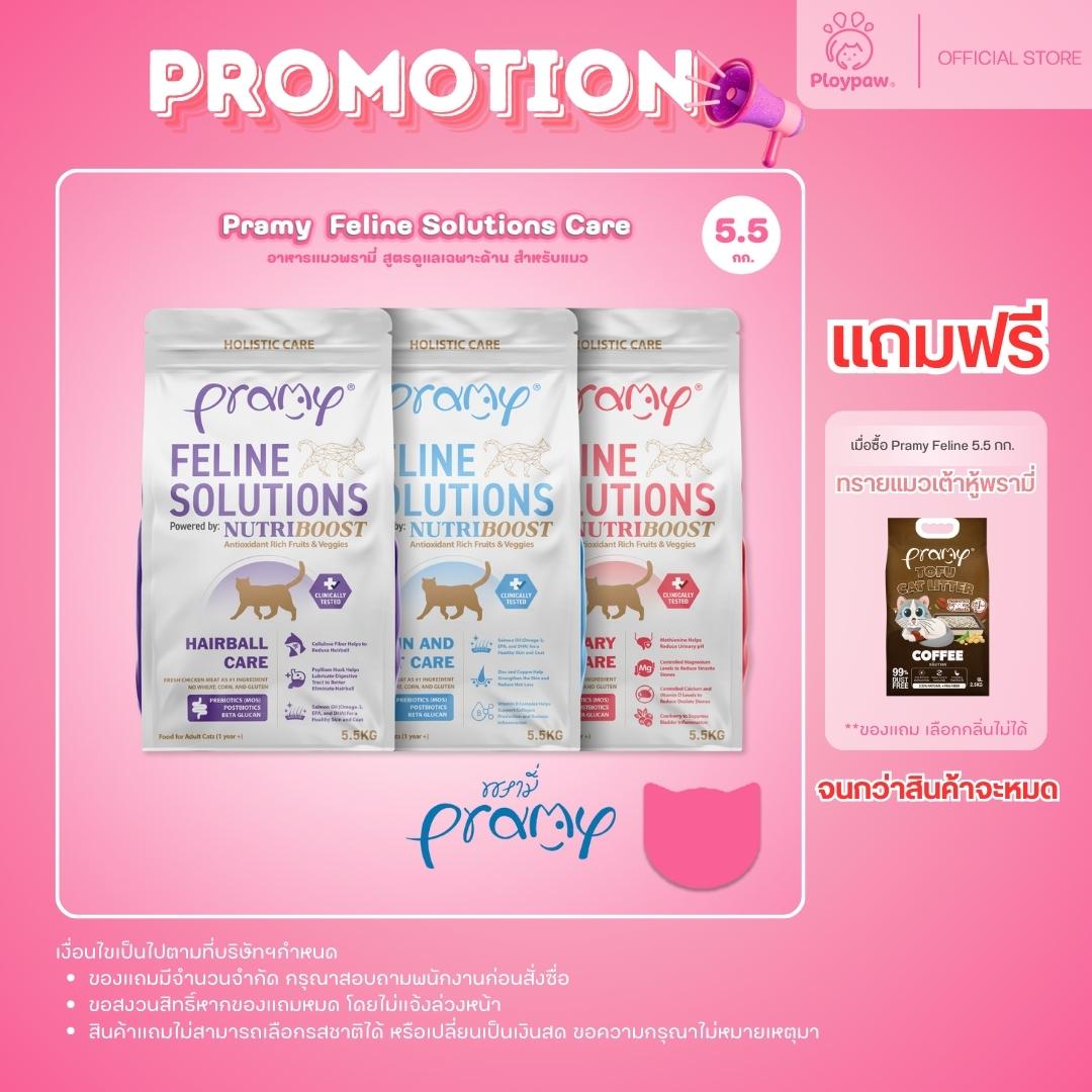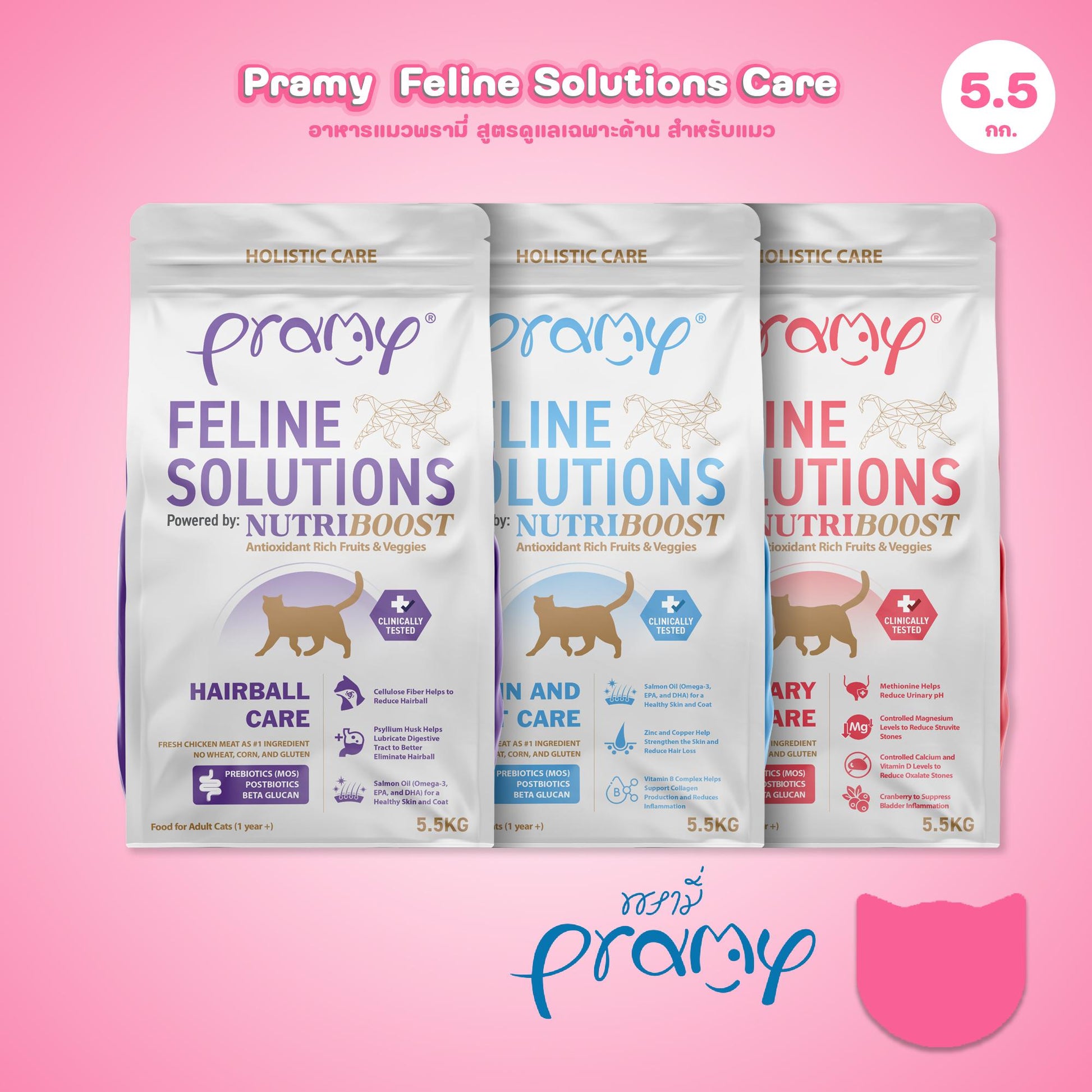 แถมฟรีทรายแมว! [ยกกระสอบ 5.5 กก.] อาหารแมวพรามี่ Pramy Feline Solutions Care สูตรดูแลเฉพาะทาง สำหรับแมว ขนาด 2.3 กก.