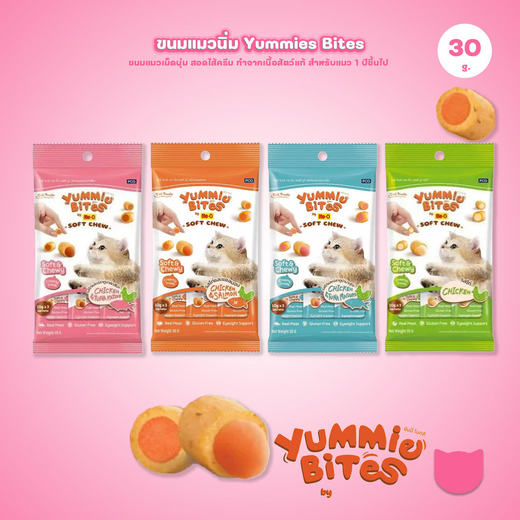 [1 แพ็ค] Me-O Yummie Bites ขนมแมวนิ่ม ฝึกแมว ขนมแมวนุ่มหนึบ สอดไส้ครีม ขนาด 30 กรัม