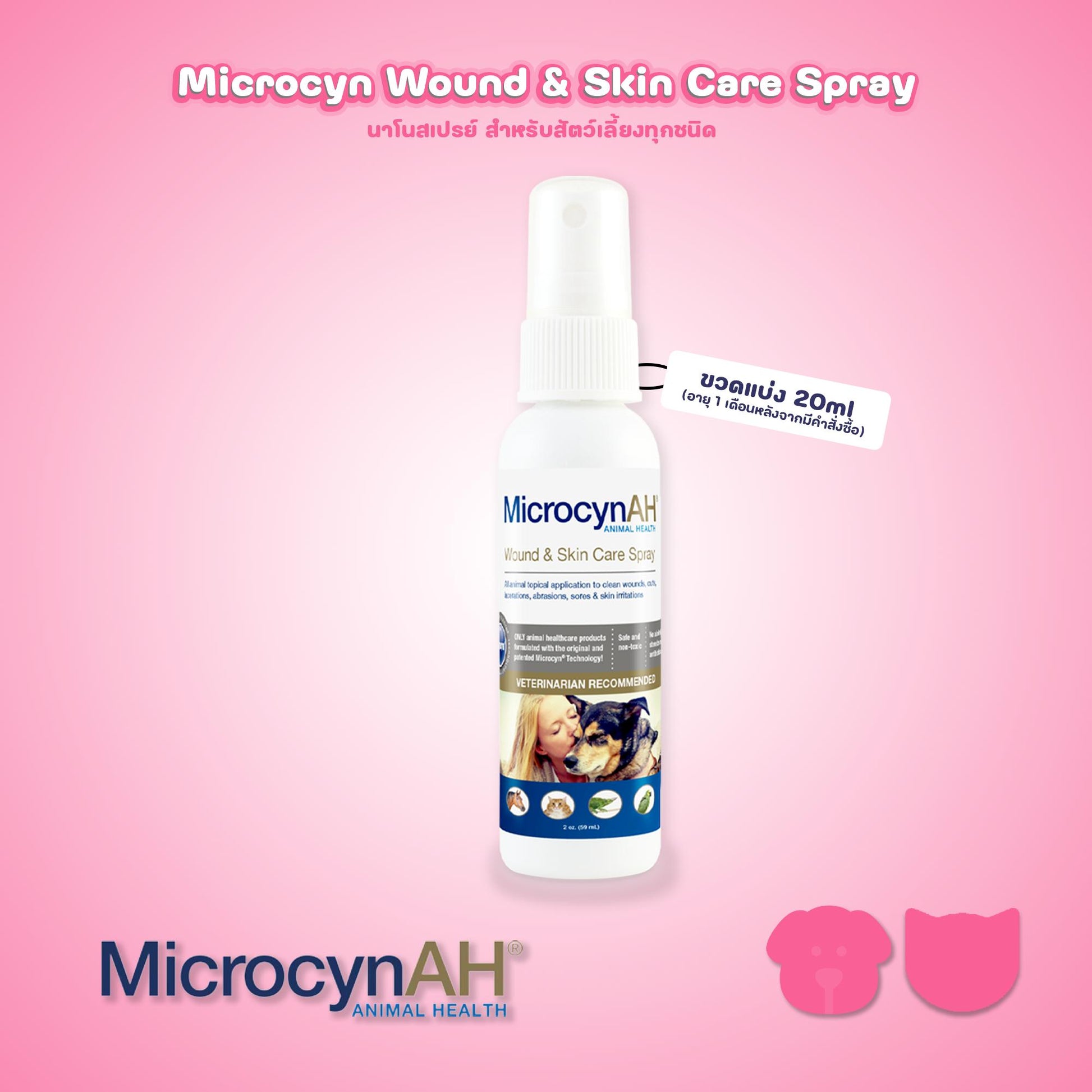 MicrocynAH Wound&Skin Spray นาโนสเปรย์ สำหรับสัตว์เลี้ยงทุกชนิด ขวดแบ่งฯ 20 มล. (อายุ 1 เดือนเท่านั้น)